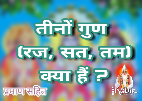 वेदों और पुराणों के अनुसार, रजगुण ब्रह्मा जी, सतगुण विष्णु जी, और तमगुण शिव जी को कहा गया है। ये तीनों गुण ब्रह्म (काल) और प्रकृति (दुर्गा) से उत्पन्न हुए हैं और ये सभी नाशवान हैं।